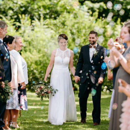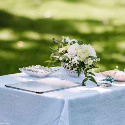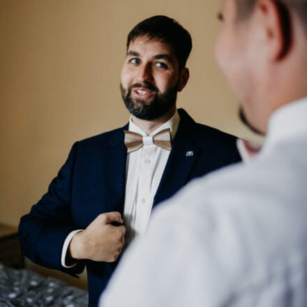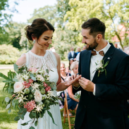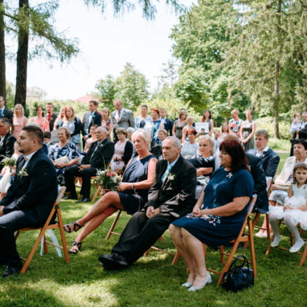 Svatební den Veroniky a Michala se odehrával na několika místech. Obřad se konal v Lipníku nad Bečvou. Místní park nabídl příjemný stín, který všichni svatebčané i novomanžele během oddání ocenili. Prostředí parku se letně zelenalo a vonělo čerstvě posekanou trávou. Po krásném venkovním obřadu jsme nafotili skupinové fotografie se všemi svatebními hosty a přesunuli se na svatební hostinu, která byla připravena v nedaleké Černotíně.