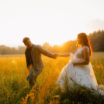 Portrétní fotografie byly pořizovány u větrného mlýna v blízkém Jalubí, kde jsme měli nádherný výhled na západ slunce a vznikly tak ty nejkrásnější snímky.